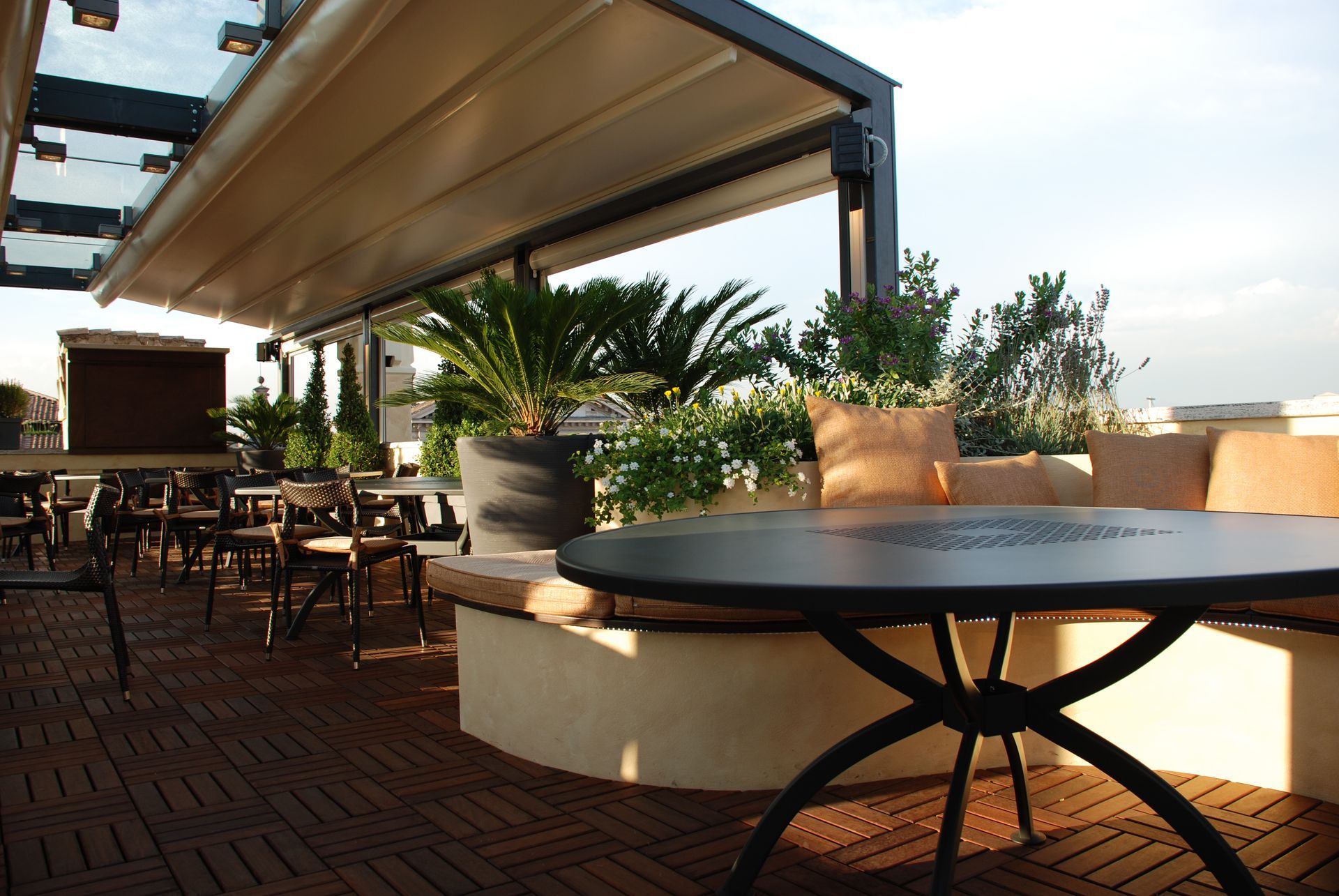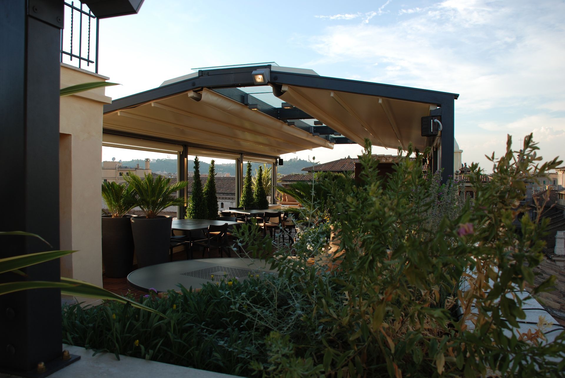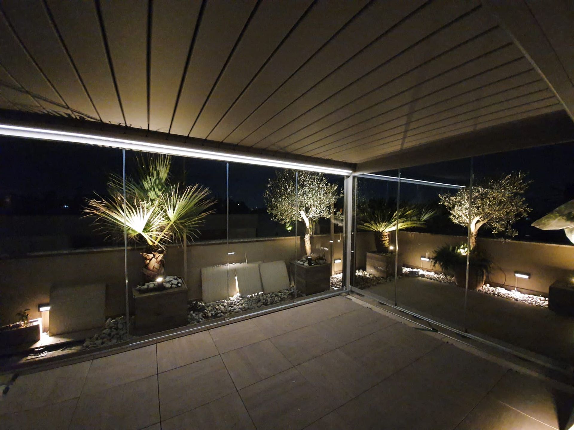 - Chiusure perimetrali: Tende verticali INTEGRATE RASO (solo per OPERA), WINDY (solo per VISION), vetrate SLIDE o SLIDE GLASS.