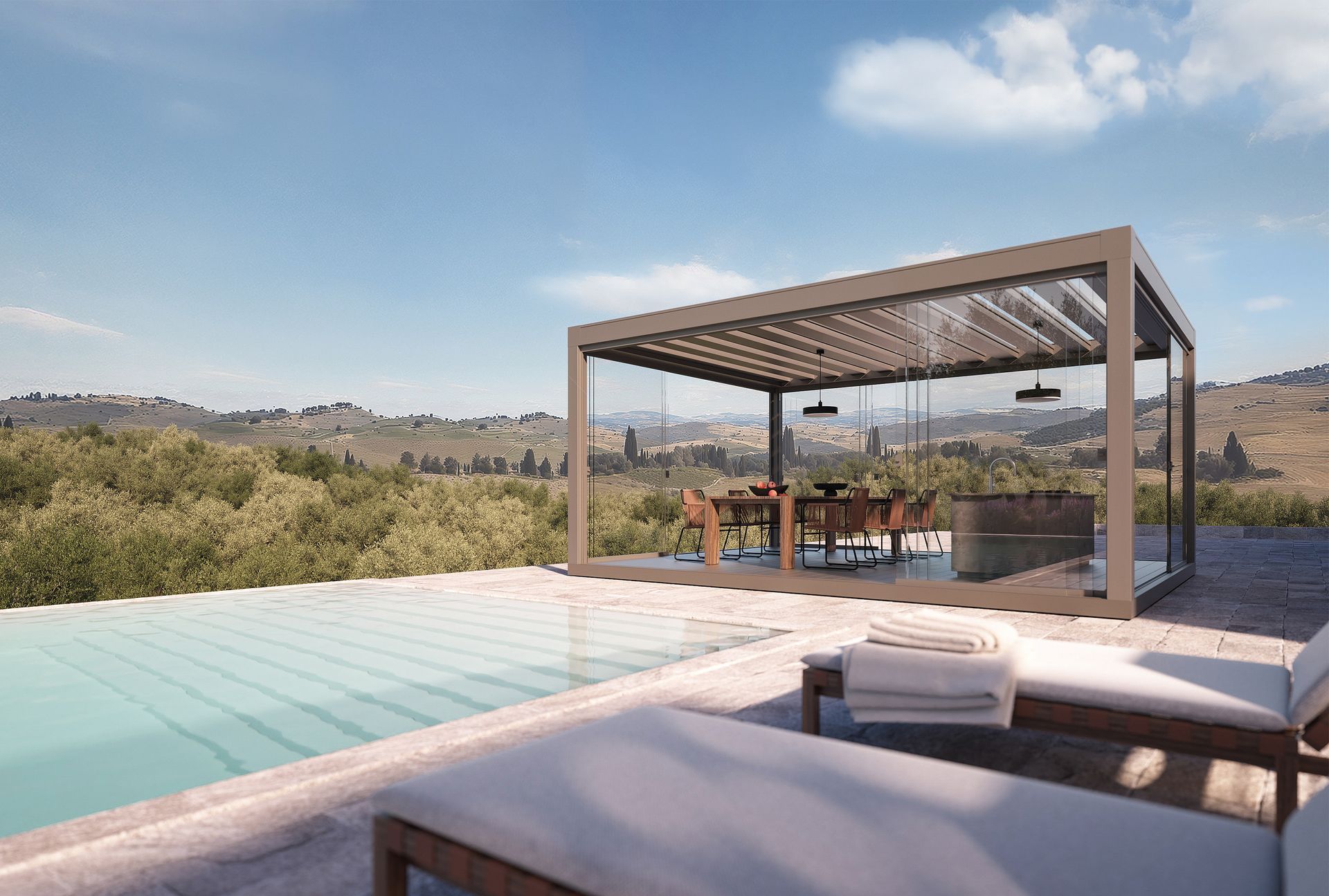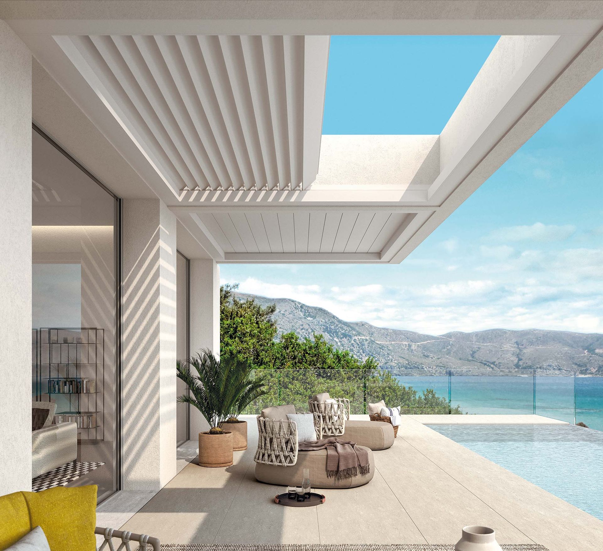 Vision e Opera sono le nuove pergole bioclimatiche che offrono il massimo comfort in termini di temperatura, luce e ventilazione grazie a una modulazione naturale di vento e sole. Hanno un design raffinato, creano un micro ambiente gradevole ed ecologico.