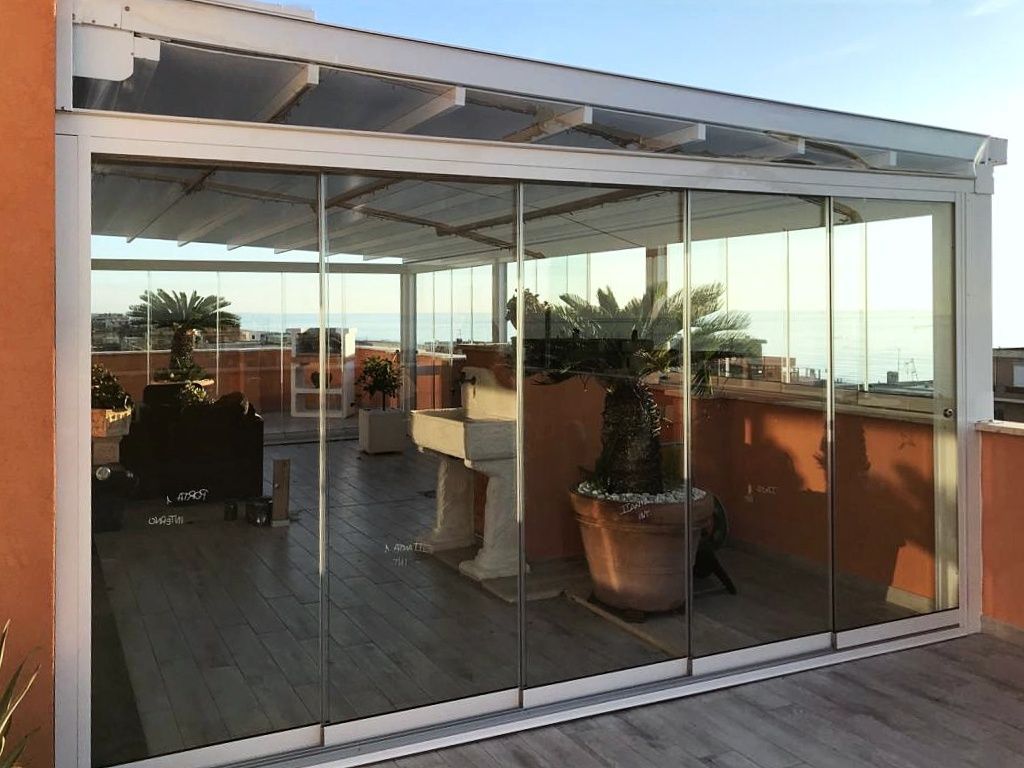 Durante l'estate, potrai aprire facilmente le vetrate per lasciare entrare la brezza fresca, mentre nei mesi primaverili e autunnali potrai proteggerti dal vento e dalla pioggia senza rinunciare alla vista. Le Vetrate Scorrevoli trasformano il tuo living esterno in un ambiente vivibile 365 giorni all'anno, in totale comfort e stile.
